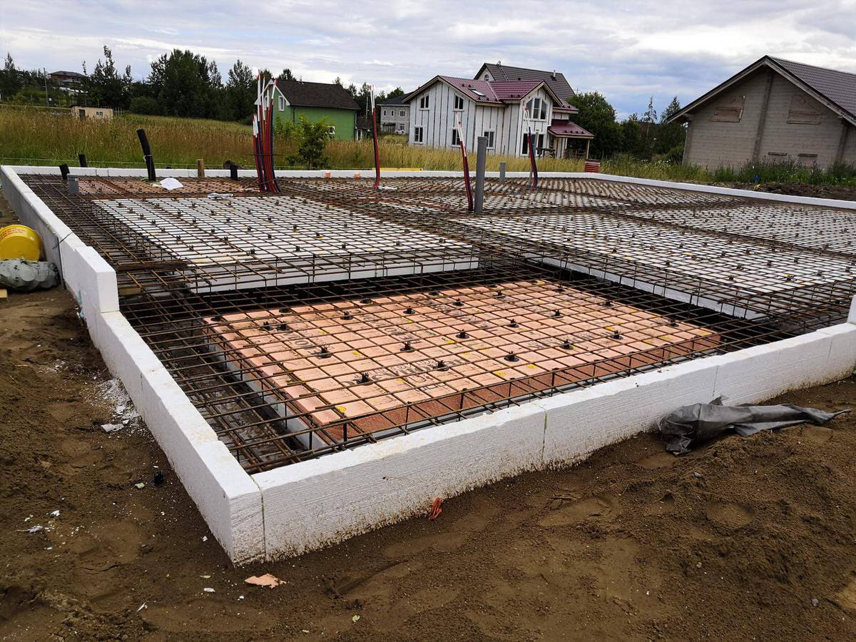 Теплая плита фундамента позволяет сэкономить на установке теплого пола и снижает затраты на электроэнергию.